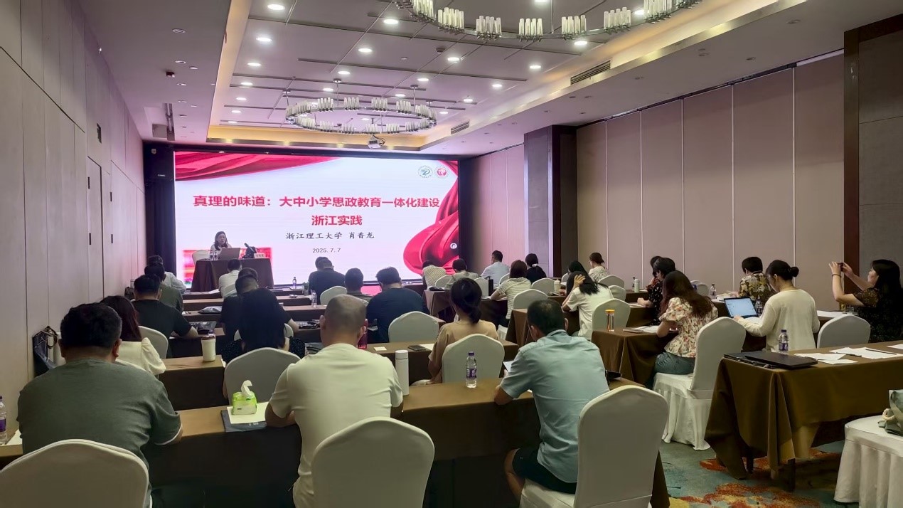 研修班上,浙江理工大学球友会肖香龙教授以《真理的味道:大中小学思政教育一体化建设浙江实践》为题,深入解读新时代思政一体化建设的政策内涵与实践路径,分享了跨学科思政元素挖掘的方法技巧。
