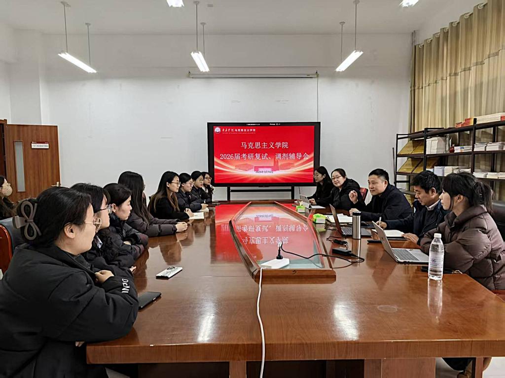 为帮助2026届考研学子科学备战复试、精准把握调剂政策,3月16日下午,学院在豁然楼A315会议室举办了考研复试、调剂专题辅导会。会议特邀博士、省事业单位招录面试专家邢西敬副教授,省思政课比赛获奖教师程诚副教授,青年教师徐寒冰及优秀在读硕士研究生姚继阳作经验分享。学院2026届考研上线学生参加辅导会,学院党委书记仝锡文主持会议。