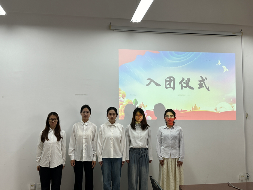 学院团委书记张璐老师首先代表学院向新加入共青团的同学致以热烈祝贺,并指出,团员身份不仅是一份荣誉,更是一面引领成长的旗帜。希望新团员要以“功成不必在我”的精神境界和“功成必定有我”的历史担当,在理论学习中筑牢信仰之基,在实践磨砺中锤炼过硬本领,让青春在全面建设社会主义现代化国家的火热实践中绽放光芒。随后,新团员们面向入团誓词,高举右拳,庄严宣誓,铿锵有力的誓言响彻全场,彰显着他们对共青团的无限忠诚与坚定决心。最后,新团员代表发表感言,表示入团是人生新的起点,自己将以团员标准严格要求自己,主动承担“强国一代”的历史责任,在课堂上深耕马克思主义理论,在实践中传播党的创新思想。