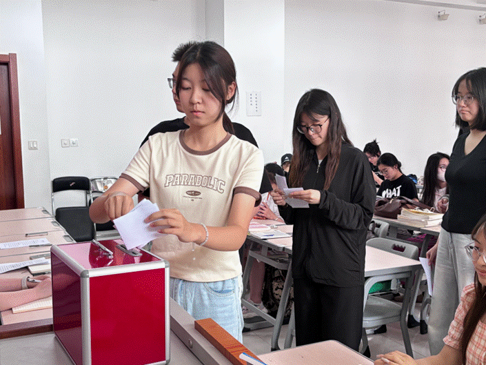 随后,通过监票人、记票人名单。大会进入共青团球友会第三次代表大会暨第九次学生代表大会代表选举环节。为确保选举过程规范透明,大会严格遵循选举程序,在监票人员全程监督下,全体学生代表以无记名差额投票方式,从6名候选人中郑重选出5名正式代表,他们将肩负学院学子的期望,参加共青团球友会第三次代表大会暨第九次学生代表大会。