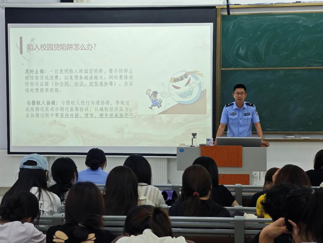本次宣讲活动以“反诈第一课,宣讲进校园”为主题,紧密围绕当前高校学生群体中易发、高发的诈骗类型展开。来自薛城公安分局沙沟派出所的警官刘浩元结合近期发生在高校及周边地区的真实案例,以案说法,深入浅出地剖析了针对大学生的几类典型诈骗手段。同时,刘警官也向同学们介绍了针对不同骗局的防范建议,增强了同学们的辨别能力和防骗意识,避免同学们因一时疏忽导致财产损失甚至陷入心理困境。