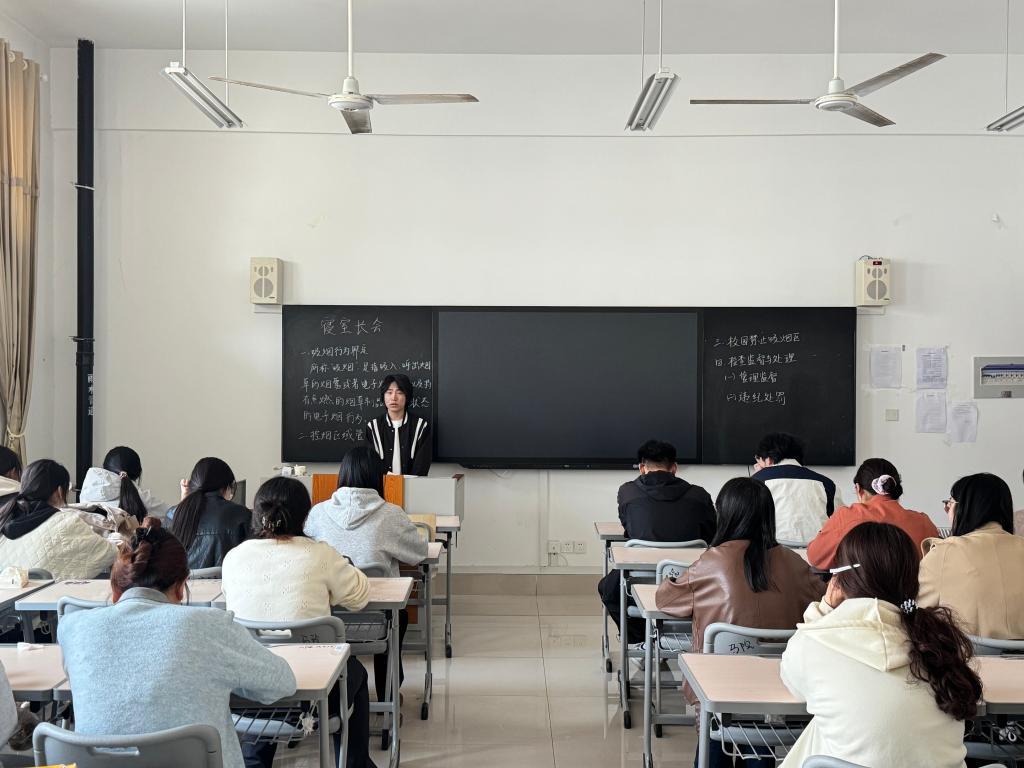 会议伊始,宿管纪检部部长梁旭锋围绕《球友会学生控烟管理办法》核心内容开展宣讲,明确“吸烟”行为界定标准,解读校园控烟区域管理要求,通报违规吸烟分级处理规则。同时,明确寝室长作为宿舍禁烟监督员的岗位职责,强调学生公寓为校园重点禁烟区域,严禁在宿舍内吸烟、乱扔烟头,要求全体寝室长以身作则、率先垂范。其次,部署寝室长具体工作任务,需做好宿舍控烟宣传、日常自查与违规劝导,及时劝阻室友吸烟行为。此外,明确将控烟工作与文明宿舍评选、评优评先挂钩,压实寝室长责任,构建“学院统筹、寝室长带头、全员参与”的长效工作格局。